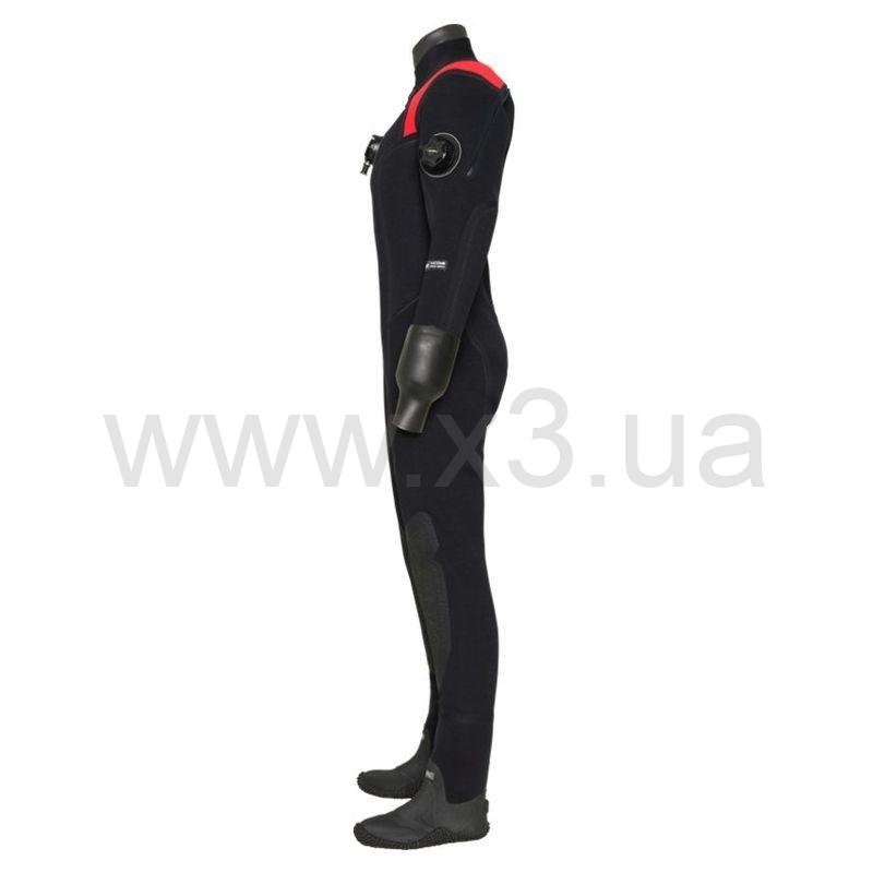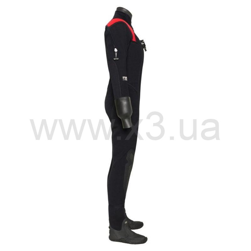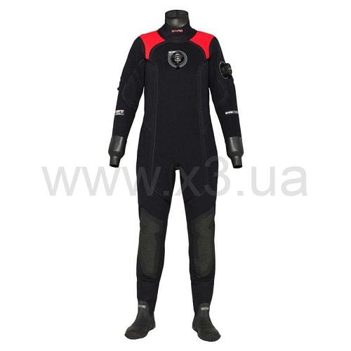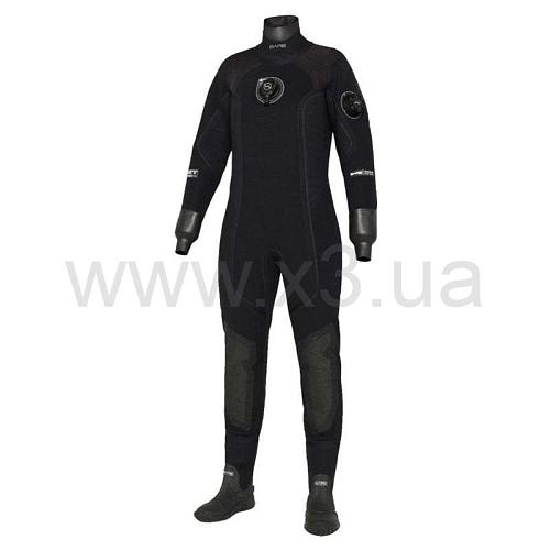 Газо-водонепроницаемая пластиковая эластичная молния Tizip расположена на груди, с наружной защитной накладкой на молнии. Одеть костюм водолаз может самостоятельно. Эксклюзивная бесшовная технология NST (No Stitch Technology) соединения деталей. Боты BARE из 4 мм вулканизированного неопрена. Обновленные бейджи и светоотражающие накладки.