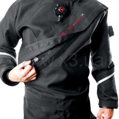 Наружным покрытием сухого костюма DX300X служит материал Cordura Ripstop, отлично противостоящий проколам, порезам и истиранию, с характеристикой «усилие на разрыв» более 300 Ньютон. Внутреннее покрытие из полиэстера, на ощупь похоже на шёлк, даёт оптимальную мягкость и комфорт, обеспечивает лёгкое и удобное надевание/снятие гидрокостюма. Средняя часть, бутиловая масса, состоит из 12 слоёв, что обеспечивает долговечную водонепроницаемость и отлично противостоит воздействию химических соединений и озона. Средняя плотность материалов составляет 700 г/м2.