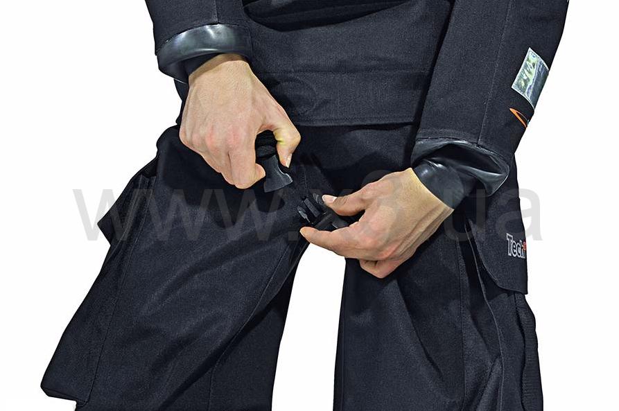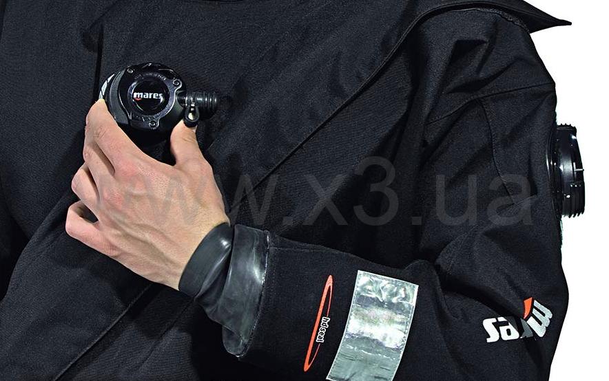 В шлеме установлен клапан, который позволяет выпустить лишний воздух. Шейные и запястные обтюраторы выполнены из латекса, а интегрированные боты – из вулканизированной резины. Все в этом костюме говорит о его надежности, практичности и соответствии самым высоким требованиям.