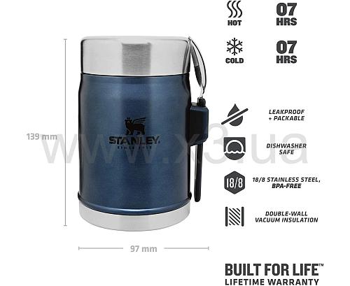 Термос для еды Stanley Legendary Classic 0,4 л – это легкий и компактный пищевой термос с удобной ложковилкой в комплекте.