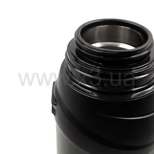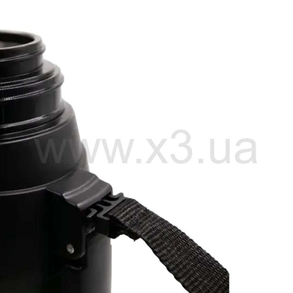 В боковую часть корпуса встроена широкая и эргономичная складная обрезиненная ручка для удобства налива или переноски термоса.