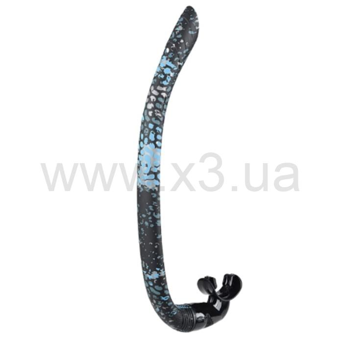 Центральная часть трубки слегка сплющена, чтобы плотнее прилегать к голове под ремешком маски, что снижает вибрации и улучшает гидродинамику.