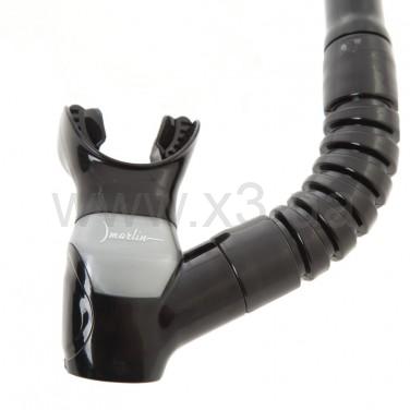 При погружении верхний клапан препятствует проникновению воды в трубку, а нижний тарельчатый клапан позволяет легко удалить воду из трубки в случае ее попадания вовнутрь. Гофрированная нижняя часть имеет анатомический изгиб, что исключает усталость челюстных мышц при удерживании загубника во рту.