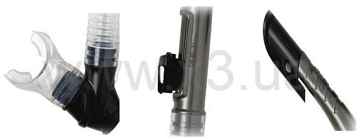 Разъемный поворотный держатель сведет на "нет" все неудобства, связанные с креплением трубки к ремешку маски.