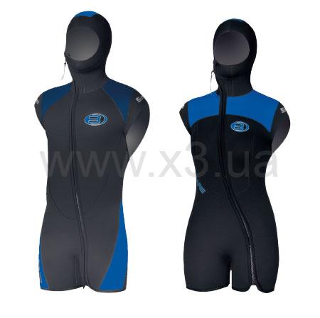 Куртка - утеплитель, используется с монокостюмом в теплой воде. Одевается сверху на гидрокостюм.
