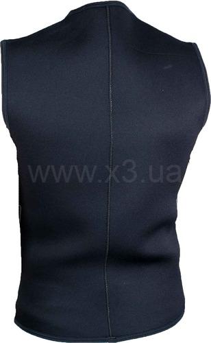 Неопреновая жилетка предназначена для утепления при погружениях в холодную воду. Как правило, одевается под костюм. Основная часть толщиной из 3 мм неопрена. В области шеи внешняя часть выполнена из гладкого неопрена для лучшего прилегания шейного обтюратора гидрокостюма.