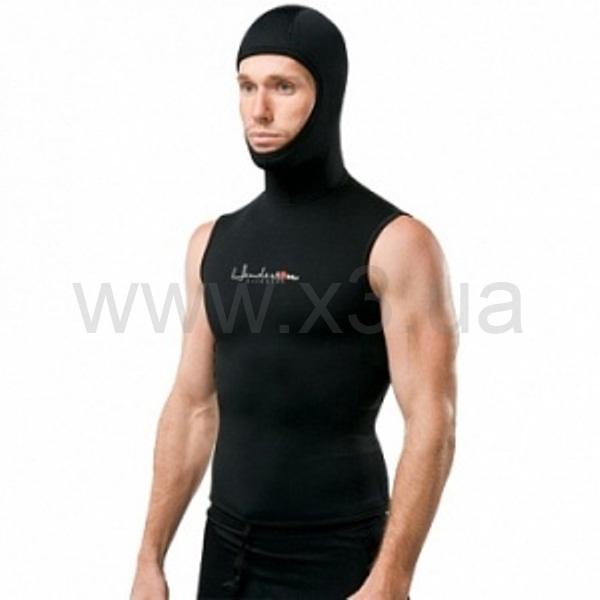 Майка со шлемом – необходимый элемент снаряжения, который позволяет сохранять тело в тепле. Используется вместе с гидрокостюмом мокрого типа.