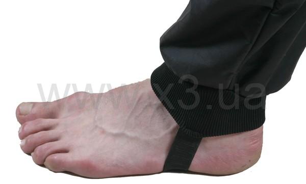 Оснащен фиксирующиеми петлями для ступней и больших пальцев рук для избежания закатывания штанин и рукавов.