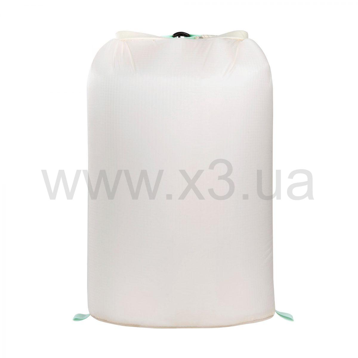 Мешок имеет водонепроницаемые швы, заклеенные лентой, и закрывающийся рулон, с помощью которого содержимое мешка может сжиматься. Изготовлен из силиконизированного полиамида не содержит ПФУ и его можно стирать.