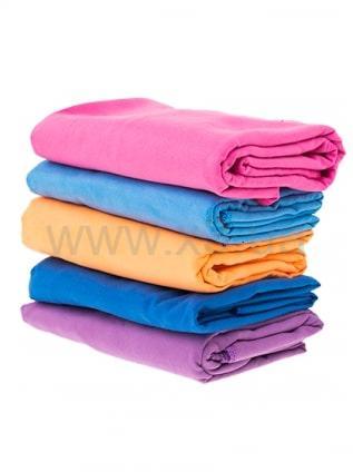 Сам вес полотенца из микрофибры в сухом виде в сравнении с аналогичного размера махровым до 5 раз меньше. Материал является антиаллергенным и очень приятным к коже, напоминающую мягкую замшу.