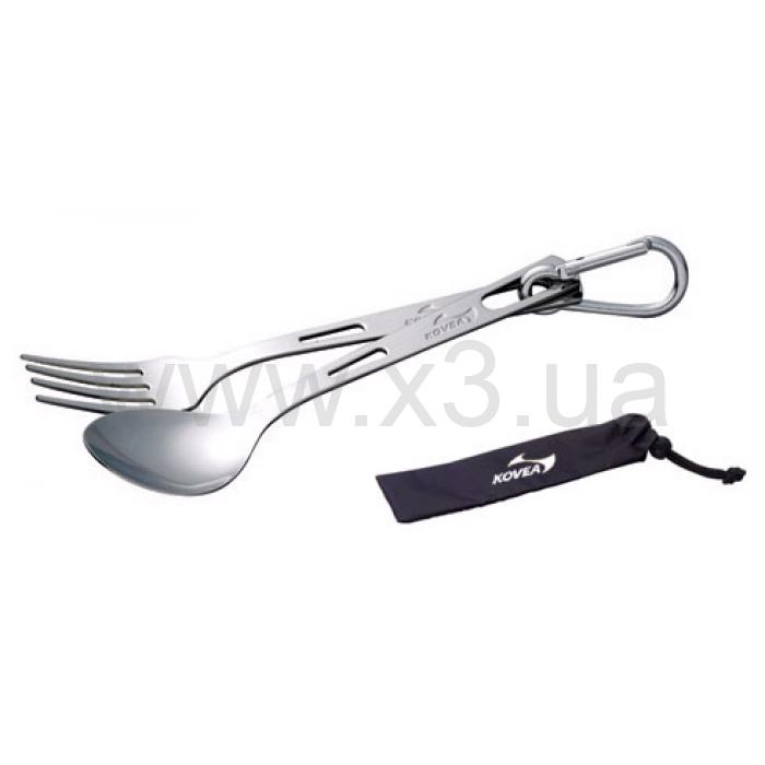 Набор столовых приборов Kovea KKW 1008 - вилка ложка карабин. Сделан из титанового сплава, что обеспечивает неимоверную легкость и прочность. Удобный карабин позволит носить приборы на поясе или снаружи рюкзака.