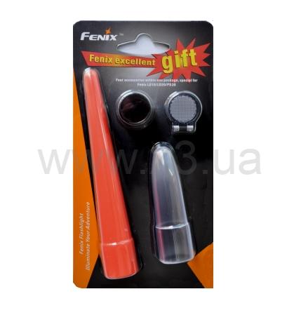 В набор входят: красный фильтр - помогает при использовании для сохранения ночного видения, рассеивающая линза - рассеивает свет из узкого луча в более широкий для более комфортной работы на близких расстояниях и рассеивающая насадка - превращает фонарь в лампу удобно при использовании в помещениях.