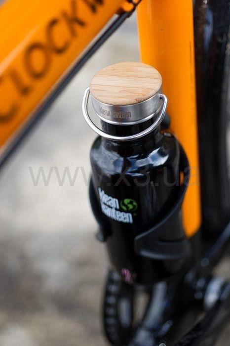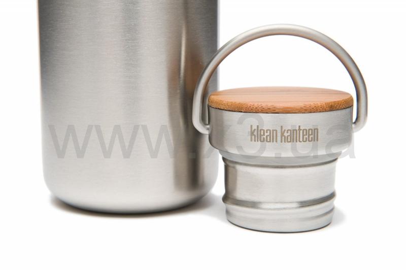 Элегантная стальная крышка с бамбуковой вставкой для фляг Klean Kanteen Classic.