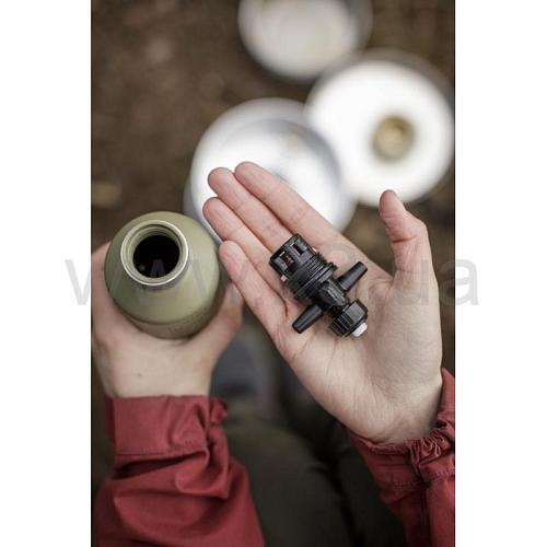 Версия оливкового цвета подходит для тактического использования, так как может быть замаскирована в полевых условиях. Бутылка красного цвета наоборот хорошо заметна и не потеряется ни в лесу, ни среди скал.