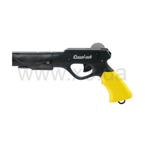 Прочное кольцо для крепления линя расположено снизу рукоятки, а ближе к оголовью имеется насадка на ствол с двумя приспособлениями для закрепления и сброса линя, крепежом в виде ласточкиного хвоста для катушки и направляющей для гарпуна.