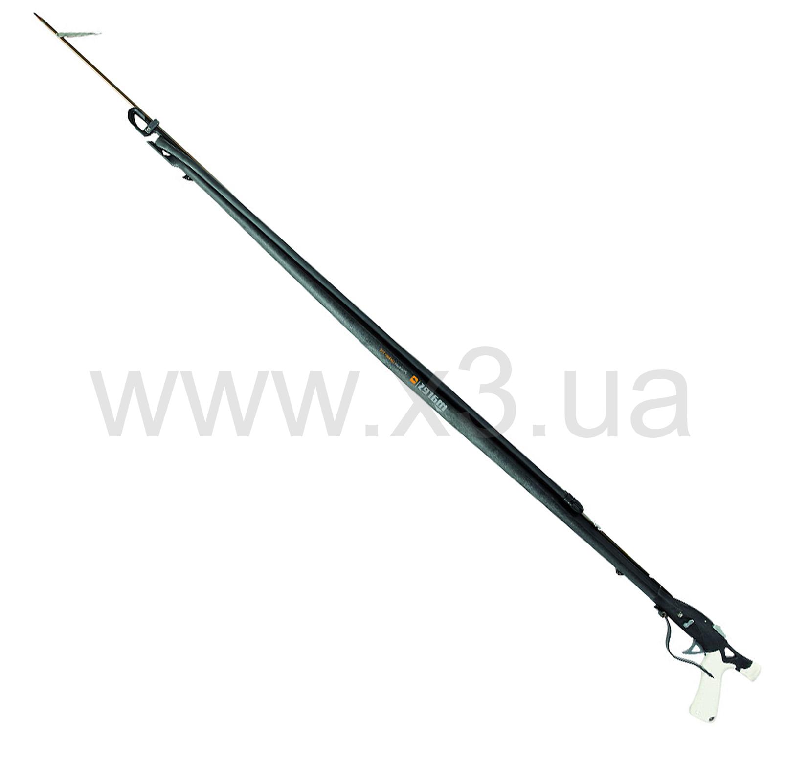 Ружье c резиновыми тягами выполнено из нейлона и углеволокна, ручка и оголовье изготовлены как единая деталь со стволом.
