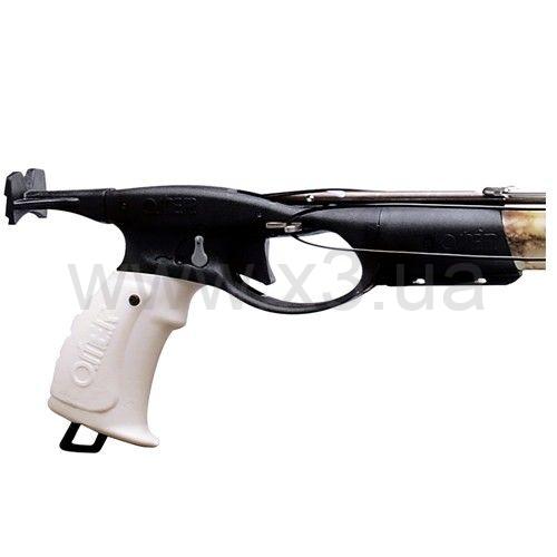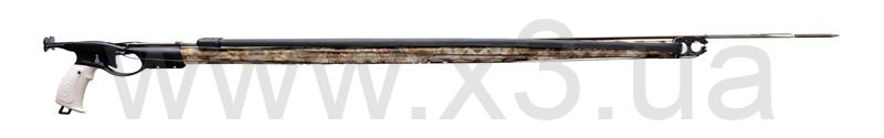 Ружье с несущей аллюминиевой трубой сложного профиля, изготовленной по технологии "гидроформинга", что придает ружью исключительную жесткость, легкость и маневренность. Рукоятка CAYMAN с цельным шепталом из нержавеющей стали и точкой упора совпадающей с центром несущей трубы. Оголовник рассчитан на две кольцевые тяги и имеет съемную перемычку из нержавеющей стали, что позволяет использовать гарпуны с зацепом типа "акулий плавник". Анатомическая рукоятка с отличным запасом под палец идеально ложится в руку. Окрашено в камуфляжную 3D расцветку. Белая рукоятка для лучшей видимости в воде. Поставляется с одной кольцевой тягой диаметром 18 мм и гарпуном с нержавеющей стали диаметром 6,5 мм.