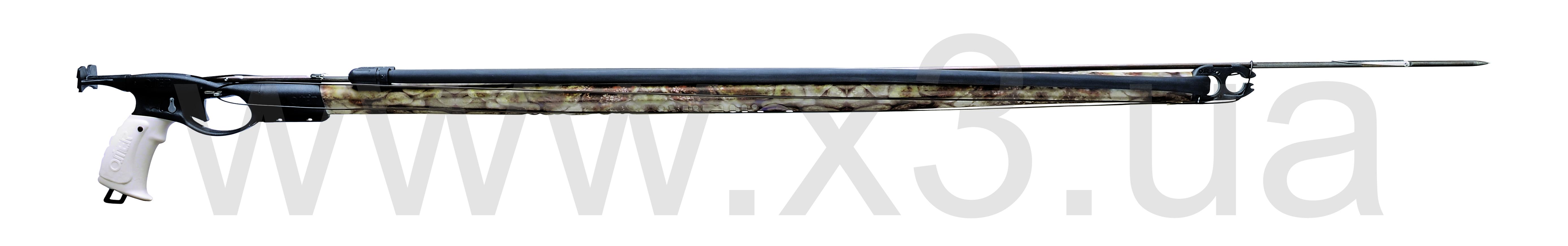 Ружье с несущей аллюминиевой трубой сложного профиля изготовленной по технологии «гидроформинга» в форме Cuttlefish Bone (кость каракатицы), что придает ружью исключительную жесткость, легкость и маневренность. Вдоль всего ствола идет направляющия канавка для гарпуна. Форма ствола приплюснутая для лучшей маневренности. Рукоятка CAYMAN с цельным шепталом из нержавеющей стали и точкой упора совпадающей с центром несущей трубы. Анатомическая рукоятка с отличным запасом под палец идеально ложится в руку. Белая рукоятка для лучшей видимости в воде. Оголовник рассчитан на две колцевые тяги и имеет съемную перемычку из нерж. стали, что позволяет использовать гарпуны с зацепом типа «акулий плавник». 3D камуфляжное покрытие ствола, нанесенное с помощью особой высокотемпературной технологии, очень устойчиво.. Каждое ружье укомплектовано анодированным 6.5 мм гарпуном из пружинной нержавеющей стали и кольцевой тягой Power 18.