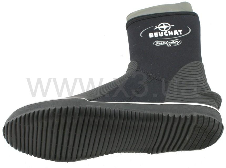 Топ модель в линейке бот фирмы Beuchat. В ней применены последние технологии и конструкторские решения, применимые в изготовлении бот. Боты из 5 или 6,5 мм неопрена с двойной обтюрацией. Двойная обтюрация позволяет минимизировать, а то и вовсе исключить циркуляцию воды. Внутренний манжет из особо эластичного неопрена Elaskin с глянцевой наружной поверхностью и титановым напылением. Наружный манжет с внутренней стороны имеет прочную молнию и глянцевую внутреннюю поверхность с титановым напылением. Это позволяет с минимальными усилиями одевать боты дайверам, имеющим высокий подъём. Усиление на подъёме защищает от передавливания и продлит срок службы бот. Дополнительный выступ на пятке обеспечивает надёжную фиксацию ремешка ласты. Глянцевые поверхности манжет, соприкасаясь, обеспечивают более надёжную защиту от притока холодной воды.