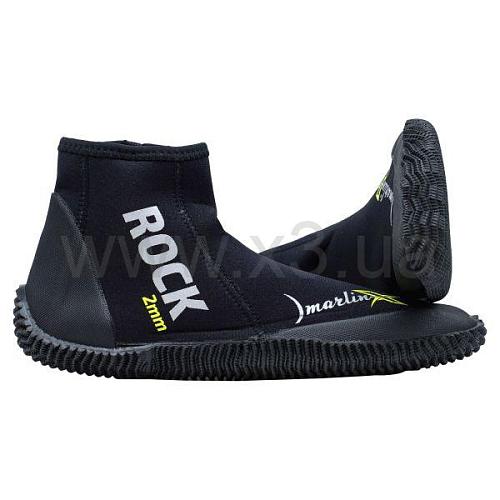Боты Marlin Rock 2 мм (Марлин Рок) - универсальная модель, изготовлена из неопрена толщиной 2 мм с высотой до щиколотки, анатомическим кроем (правый, левый) и резиновой подошвой, обрезиненными носком и пяткой. Наружное и внутреннее покрытие – нейлон. Резиновое покрытие подошвы имеет антискользящий протектор, который защитит ноги при длительных переходах по суше от прибрежных камней и других «особенностей» берега водоёма. Обеспечивают тепловую защиту и комфорт при движении. Легкие и очень удобные, подходят для ласт с открытой пяткой. При производстве данной модели бот используются экологичный неопрен и тканевые материалы ведущего мирового производителя - Sheico (Шейко).