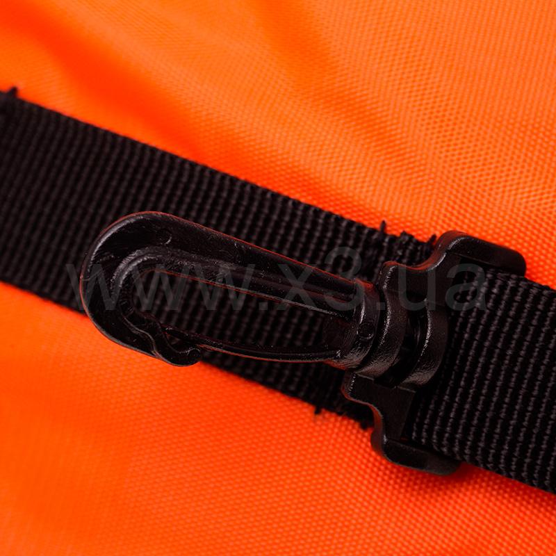 Буй имеет 4 пластиковых D – образных кольца, расположенных по периметру в нижней части, что позволяет разместить на нем небольшое количество основного или дополнительного снаряжения. Также в центре нижней части предусмотрен пластиковый карабин для крепления буйрепа.