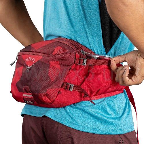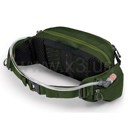 Удобная поясная сумка на 7 л от бренда Osprey - обновленная модель 2021 года. Отличный выбор для велосипедистов, сумка оснащена внутренним отделом для питьевой системы (1,5 л). На поясе есть магнит для закрепления трубки от питьевой системы. Спинка AirScape обеспечивает комфорт и воздухопроницаемость. Есть вместительный основной отдел, два боковых кармана на молниях и одна фронтальная, защищенный карман для очков или смартфона. На поясной сумке есть светоотражающие элементы для безопасного передвижения в темное время суток. Питьевая система идет в комплекте.