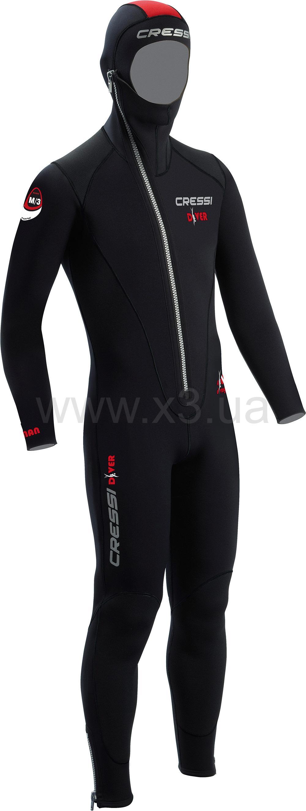 Полнокомплектный костюм из 7 мм двухслойного неопрена, со встроенным шлемом и передним креплением молнии, которое недавно было усовершенствовано как технически, так и эстетически.