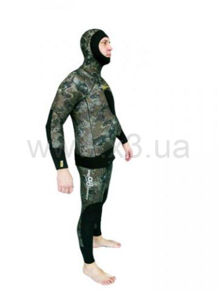 Костюм имеет анатомический крой, хорошо садится, не образует складок на сгибах рук и ног, плотно облегает тело. Колени, локти и задняя часть куртки защищены эластичным Duratex. Комфортный шлем с дополнительной обтюрацией, полностью закрывает лоб охотника.