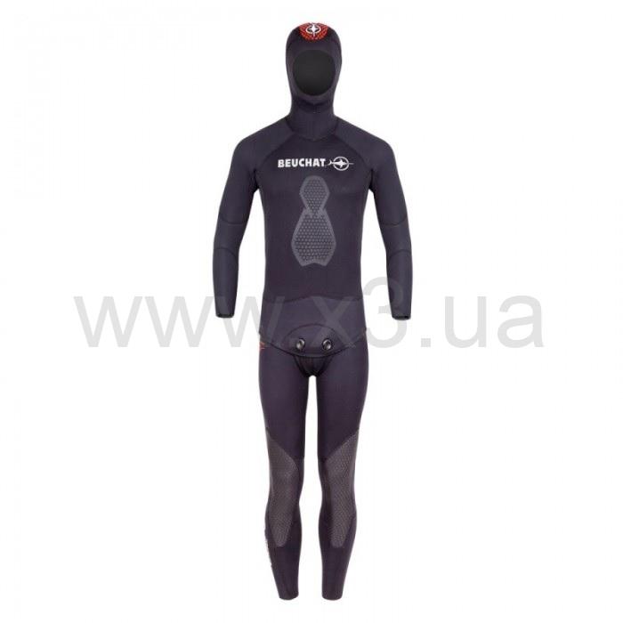 Гидрокостюм Beuchat Espadon 5мм 2023, в разработку этого костюма для подводной охоты было вложено множество новых идей. Снаружи Espadon Equipe – это все тот же классический черный гидрокостюм с «открытой порой» внутри, и нейлоном снаружи с курткой и комбинезоном. Но по сути – это принципиально новый анатомический крой. Куртка состоит из 21 независимой детали, а комбинезон – из 12. Все неопреновые элементы скреплены и проклеены вместе. Была переработана форма поясничного изгиба, а также паховая область для более плотного прилегания к телу. «Проблемные места» подмышек, локтевых сгибов и внутренних частей колен теперь не будут раздражаться во время долгой охоты, благодаря бесшовным вставкам в этих зонах. Шлем костюма Espadon Equipe был переделан и имеет меньшее лицевое отверстие. Края рукавов были уплотнены и оснащены эластичным швом, а край куртки обметали эластичной прочностной лентой. Все это призвано дать подводному охотнику свободу движения и комфорт, отличное прилегание костюма к телу и сохранение тепла на все время подводной охоты.