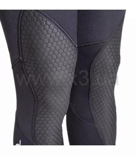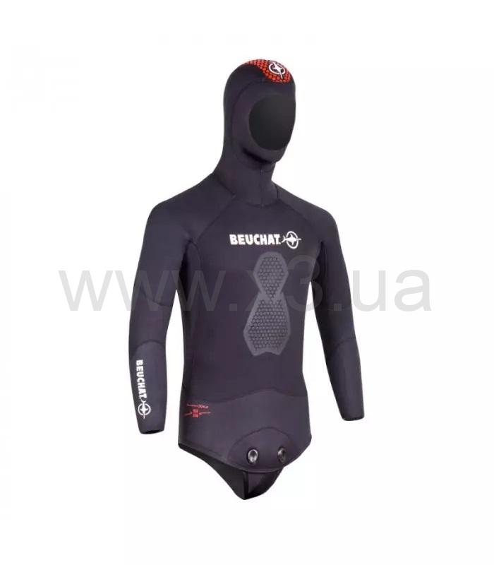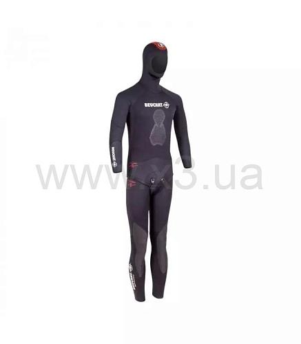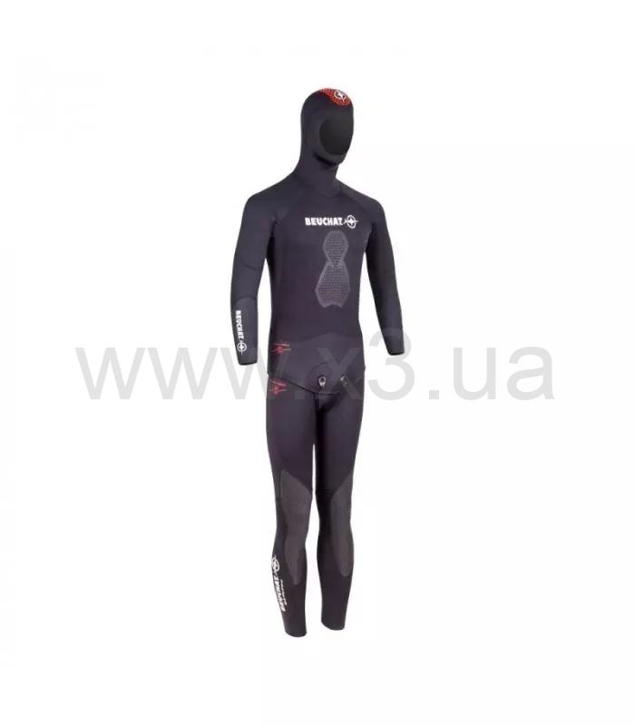 В гидрокостюм Beuchat Espadon 7мм было вложено множество новых идей. Внешне Espadon – это все тот же классический черный гидрокостюм с «открытой порой» внутри, и нейлоном снаружи с курткой и комбинезоном. Но по сути – это принципиально новый анатомический крой. Куртка составляется из 21 независимой детали, а комбинезон – из 12. Все неопреновые элементы скреплены и проклеены вмест. Была переработана форма поясничного изгиба, а также паховая область для более плотного прилегания к телу. «Проблемные места» подмышек, локтевых сгибов и внутренних частей коленей теперь не будут раздражаться во время долгой охоты, благодаря бесшовным вставкам в этих зонах. Шлем костюма Espadon Equipe был переработан и имеет меньшее лицевое отверстие. Края рукавов были уплотнены и оснащены эластичным швом, а край куртки обметан эластичной лентой для прочности. Все это призвано дать подводному охотнику свободу движения и комфорт, отличное прилегание костюма к телу и сохранение тепла на все время подводной охоты.