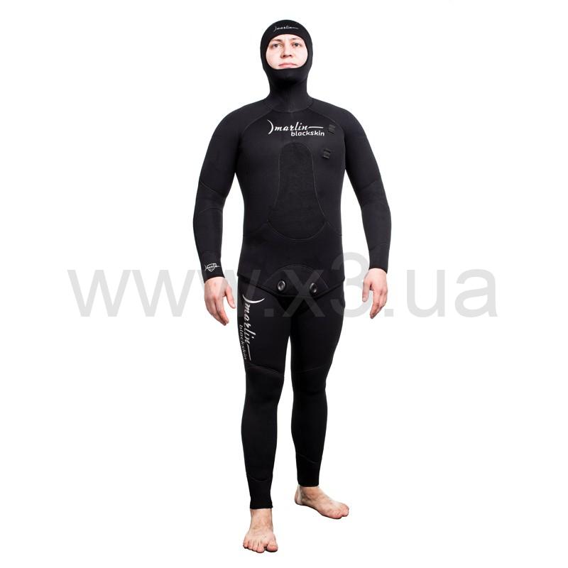 Гидрокостюм Marlin Blackskin (Марлин Блэкскин) – новая, универсальная модель гидрокостюма для подводной охоты из неопрена Sheico с крепление для ножа и карманом на бедре. Наружное покрытие изделия – черный нейлон, внутренняя поверхность – открытая пора.