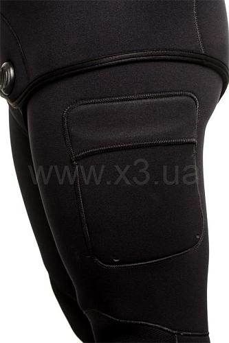 В гидрокостюме Marlin Blackskin есть крепление для ножа которое расположено в районе левого плеча. Эргономично и безопасно. Так же присутствует карман на бедре, который позволяет положить в него ключи, телефон в гермопакете и многие другие ценные мелочи.