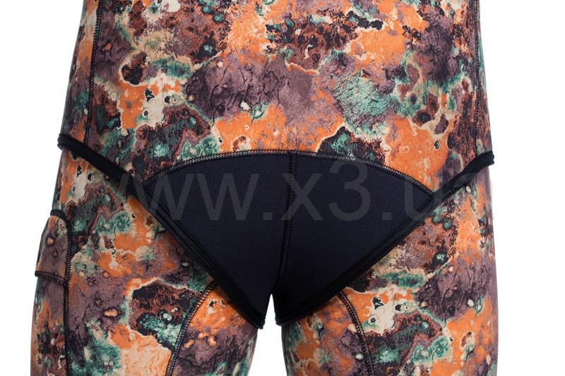 В зонах, подверженных максимальному растяжению, мы применили мягкий неопрен повышенной эластичности, в зонах обычного и низкого растяжения применяется более плотный неопрен с лучшими характеристиками компрессии и обжима.