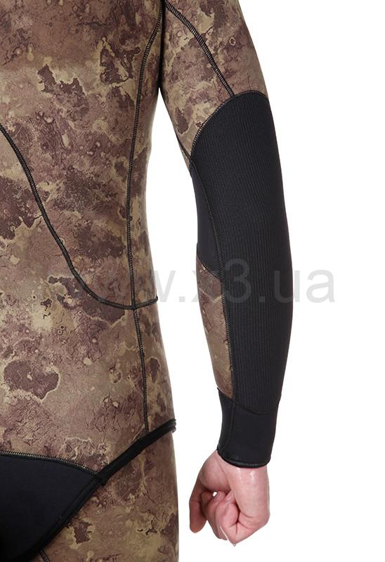 В зонах, подверженных максимальному растяжению, мы применили мягкий неопрен повышенной эластичности, в зонах обычного и низкого растяжения применяется более плотный неопрен с лучшими характеристиками компрессии и обжима.