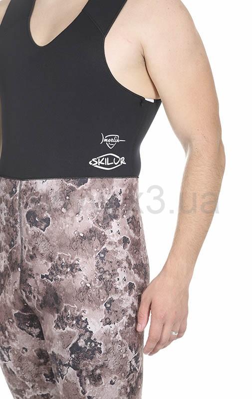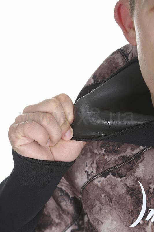 В изготовлении этого гидрокостюма применяется эластичный, мягкий, неопрен премиум класса фирмы Шейко. Снаружи неопрен покрыт сверхрастяжимой камуфлированной лайкрой, внутри – открытая пора.