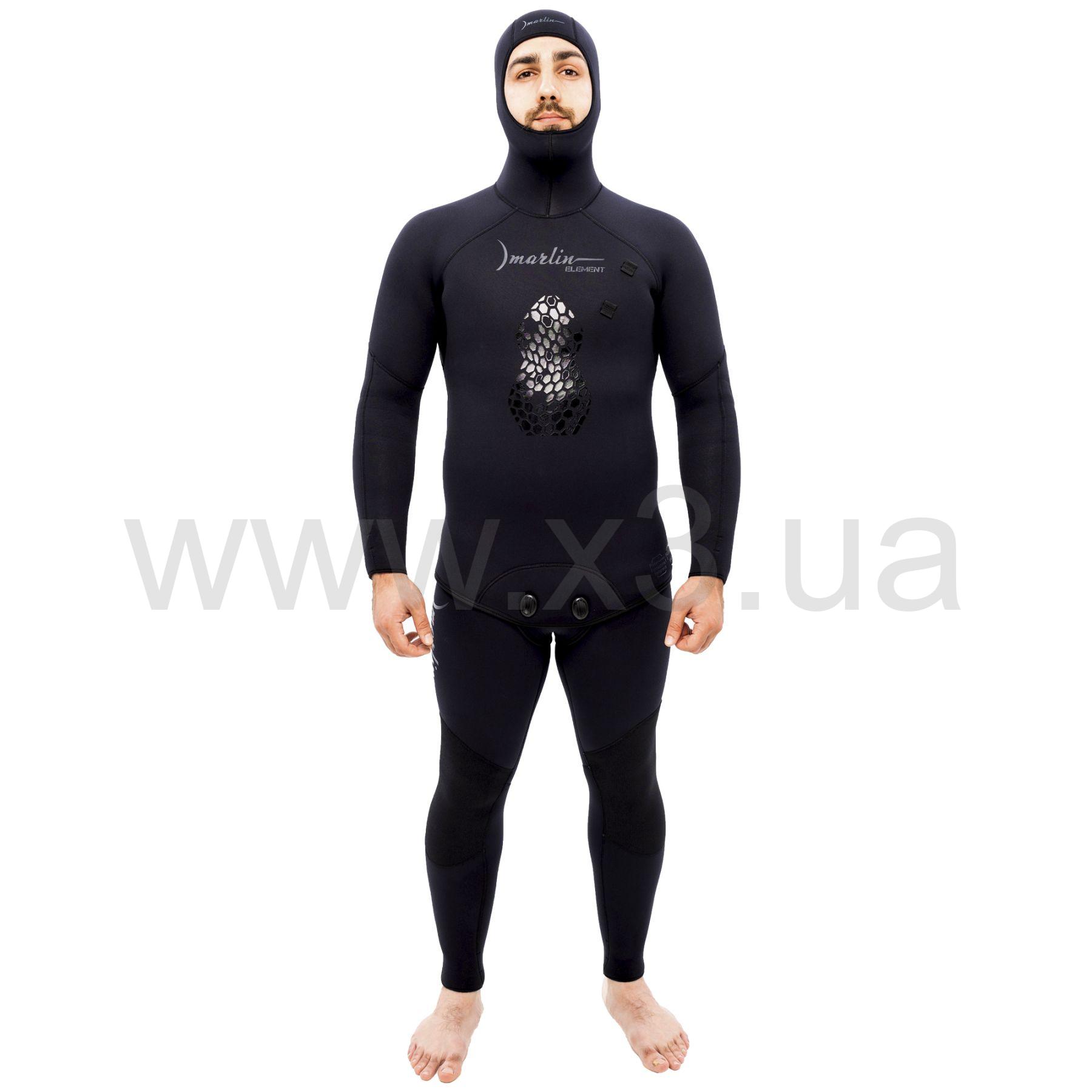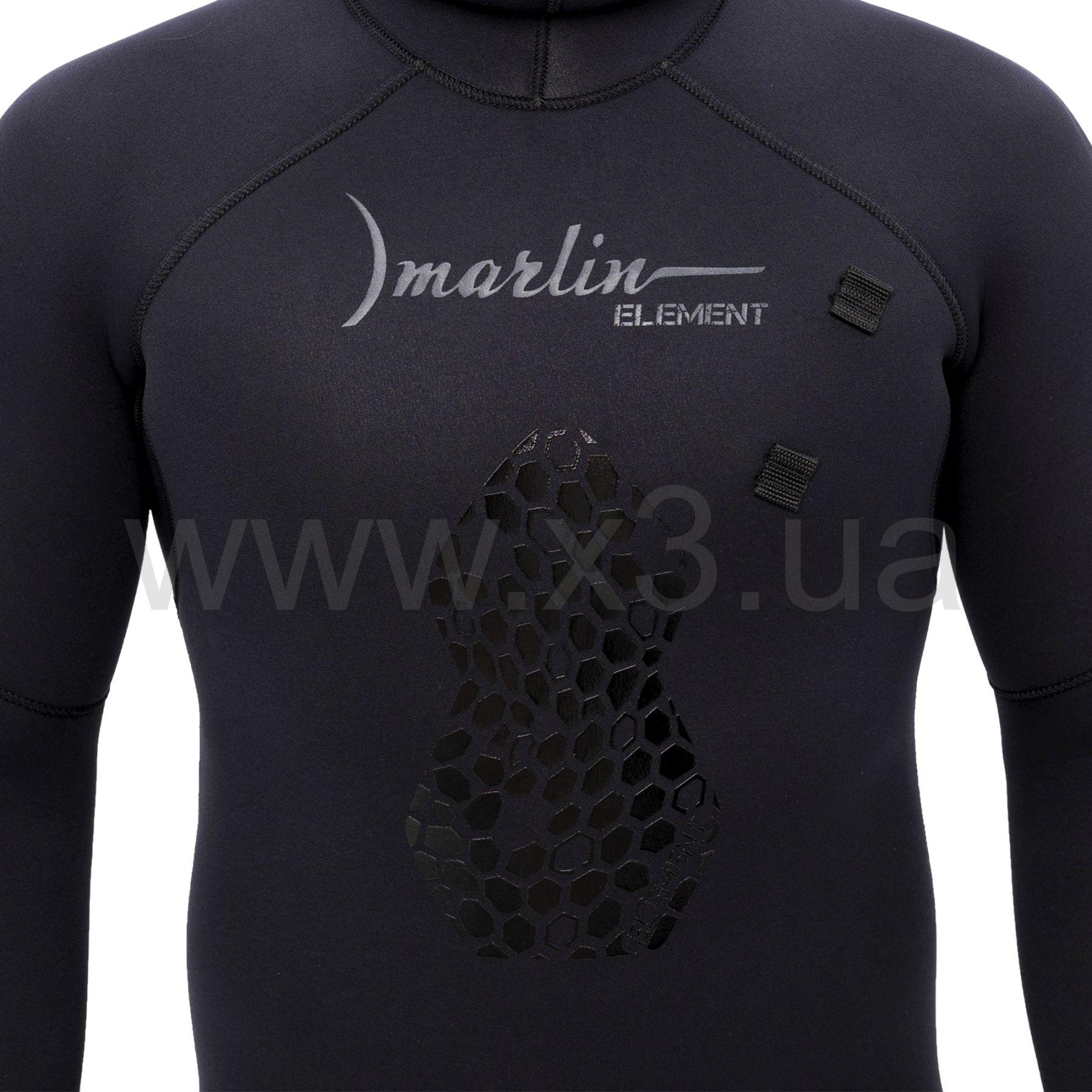 Гідрокостюм Marlin ELEMENT 5 мм (Марлін ЕЛЕМЕНТ) — це доступний гідрокостюм для підводного полювання, який складається з куртки з інтегрованим шоломом і штанів із високою талією. Зовнішнє покриття — нейлон, всередині — відкрита пора (одягається з використанням мильного розчину).