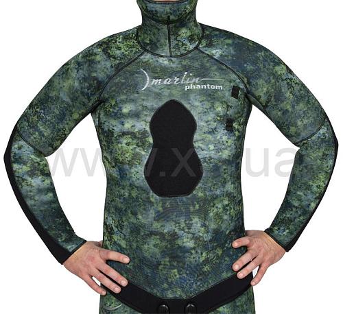 Гидрокостюм Marlin Phantom (Марлин Фантом) – гидрокостюм для подводной охоты, изготовленный из неопрена Nam Liong (Нам Лионг). Мягкий эластичный неопрен марки 3D (в моделях 5 и 7 мм), анатомический крой состоящий из 29 деталей обеспечивают комфорт при длительном использовании. Наружное покрытие – ультрастрейч, обладает повышенной эластичностью, внутренняя поверхность – открытая пора. Куртка имеет крой типа реглан, который увеличивает комфорт и создаёт максимальное прилегание гидрокостюма при эксплуатации. Для облегчения дыхания (на моделях 7, 9 и 10 мм) - майка комбинезона (Long John) выполнена из неопрена меньшей толщины. Материал duratex (дюратекс) защищает колени и локти костюма от преждевременного истирания.