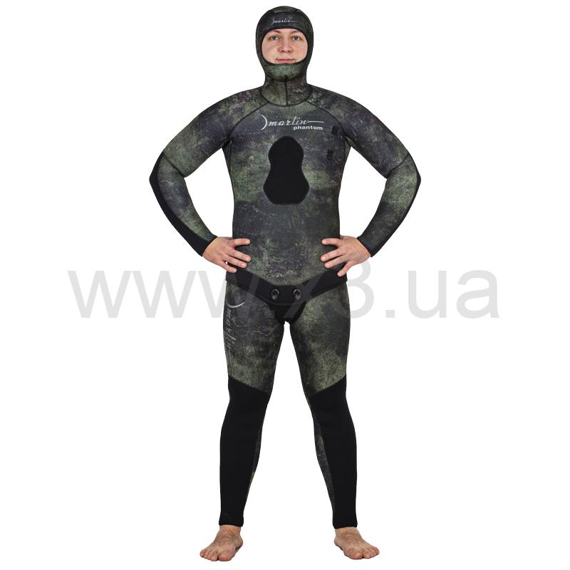 Гидрокостюм Marlin Phantom (Марлин Фантом) – гидрокостюм для подводной охоты, изготовленный из неопрена Nam Liong (Нам Лионг). Мягкий эластичный неопрен марки 3D (в моделях 5 и 7 мм), анатомический крой состоящий из 29 деталей обеспечивают комфорт при длительном использовании. Наружное покрытие – ультрастрейч, обладает повышенной эластичностью, внутренняя поверхность – открытая пора. Куртка имеет крой типа реглан, который увеличивает комфорт и создаёт максимальное прилегание гидрокостюма при эксплуатации. Для облегчения дыхания (на моделях 7, 9 и 10 мм) - майка комбинезона (Long John) выполнена из неопрена меньшей толщины. Материал duratex (дюратекс) защищает колени и локти костюма от преждевременного истирания.