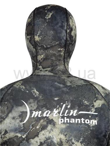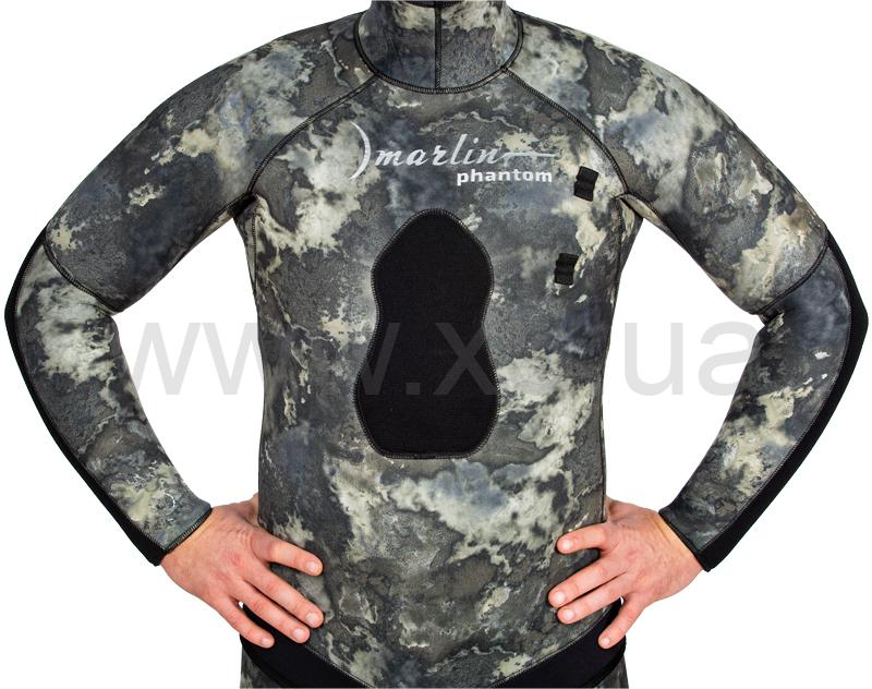 Гидрокостюм Marlin Phantom (Марлин Фантом) – гидрокостюм для подводной охоты, изготовленный из неопрена Nam Liong (Нам Лионг). Мягкий эластичный неопрен марки 3D (в моделях 5 и 7 мм), анатомический крой состоящий из 29 деталей обеспечивают комфорт при длительном использовании. Наружное покрытие – ультрастрейч, обладает повышенной эластичностью, внутренняя поверхность – открытая пора. Куртка имеет крой типа реглан, который увеличивает комфорт и создаёт максимальное прилегание гидрокостюма при эксплуатации. Для облегчения дыхания (на моделях 7, 9 и 10 мм) - майка комбинезона (Long John) выполнена из неопрена меньшей толщины. Материал duratex (дюратекс) защищает колени и локти костюма от преждевременного истирания.