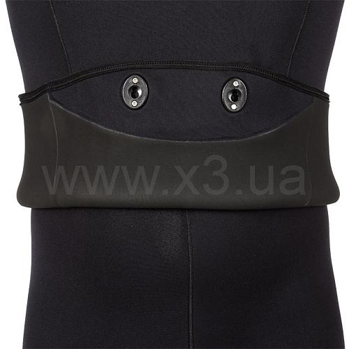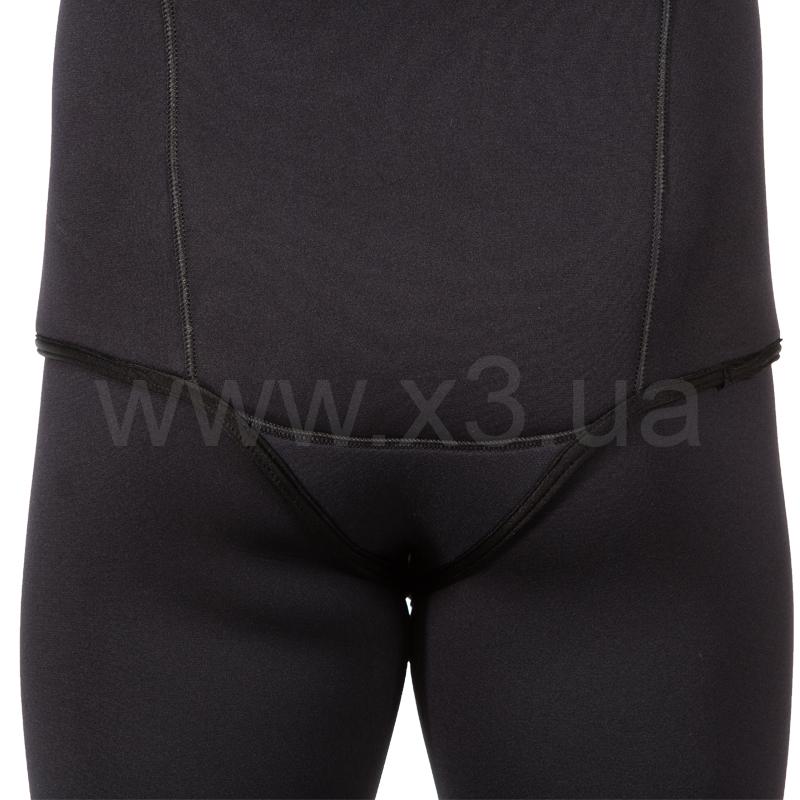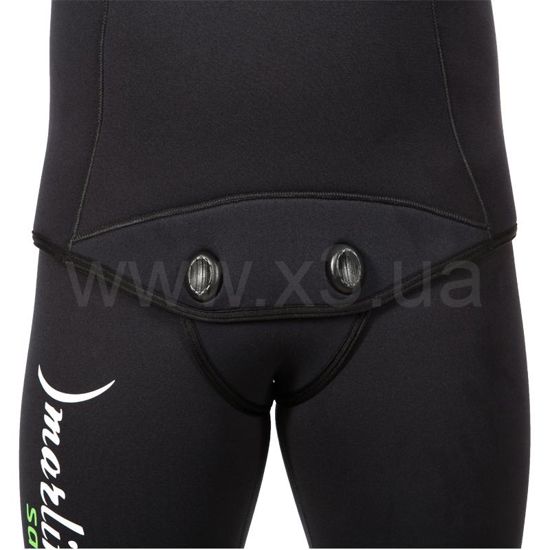 Гидрокостюм не имеет упора для зарядки ружей на груди, что облегчает дыхание подводного пловца. Брюки костюма с высокой талией, без лямок. Колени защищены прочным к истиранию материалом Duratex.