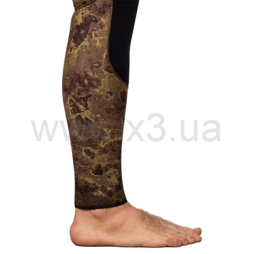 Гидрокостюм не имеет упора для зарядки ружей на груди, что облегчает дыхание подводного пловца. Брюки костюма с высокой талией, без лямок. Колени защищены прочным к истиранию материалом Duratex.