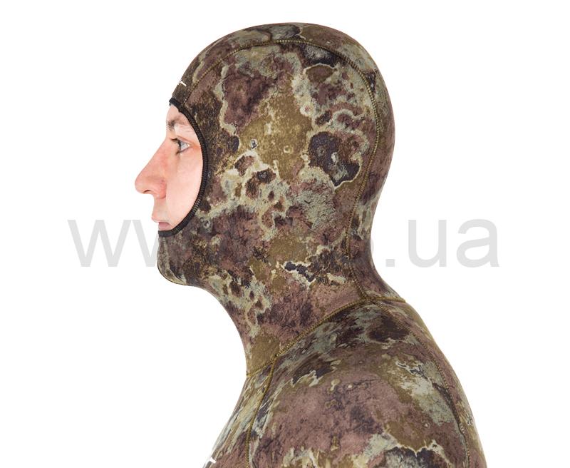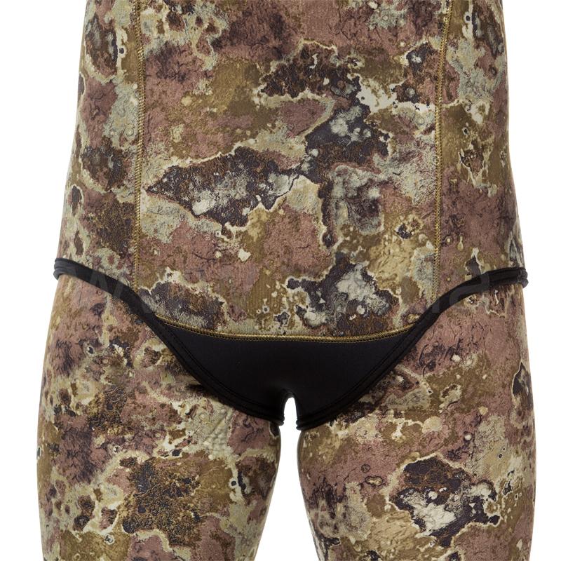 Гидрокостюм не имеет упора для зарядки ружей на груди, что облегчает дыхание подводного пловца. Брюки костюма с высокой талией, без лямок. Колени защищены прочным к истиранию материалом Duratex.