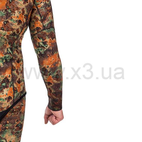 Гидрокостюм не имеет упора для зарядки ружей на груди, что облегчает дыхание подводного пловца. Брюки костюма с высокой талией, без лямок. Колени защищены прочным к истиранию материалом Duratex.