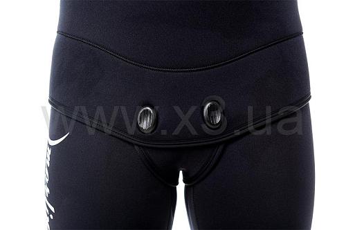 В гидрокостюме Marlin Skiff Pro есть крепление для ножа (расположено на груди, слева) и упор для зарядки ружей, приклеенный к костюму и прошитый по периметру, что исключает отрывание упора в процессе его эксплуатации.