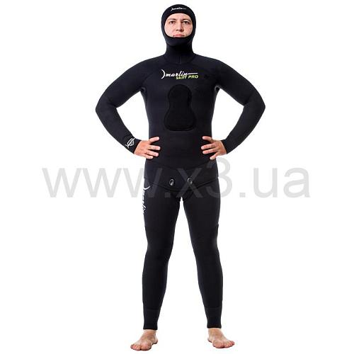 Гидрокостюм Marlin Skiff Pro (Марлин Скиф Про) – обновленная модель гидрокостюма Skiff 2.0. При производстве данной модели используется эластичный и мягкий неопрен марки L от фирмы Шейко. Анатомически точный крой гидрокостюма, состоящий из 35 деталей, обеспечивает максимально свободное движение подводного охотника в воде. Куртка имеет крой типа реглан, который увеличивает комфорт и обеспечивает максимальное прилегание гидрокостюма. С внутренней стороны нижняя часть куртки защищена нейлоном – это позволяет надевать и снимать куртку без опасения надорвать или оставить задиры. Основное отличие этой модели от Skiff 2.0 – штаны без лямок, с дифференциальной толщиной неопрена в области талии (на моделях 5, 7 и 9 мм)*.