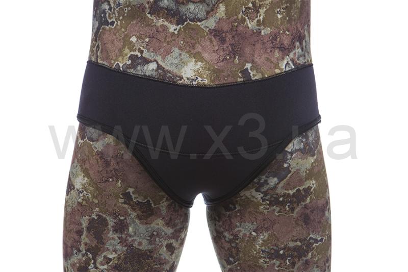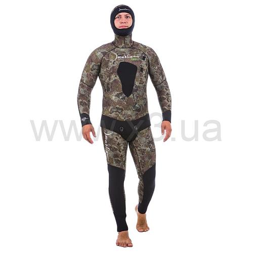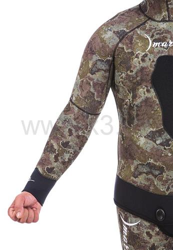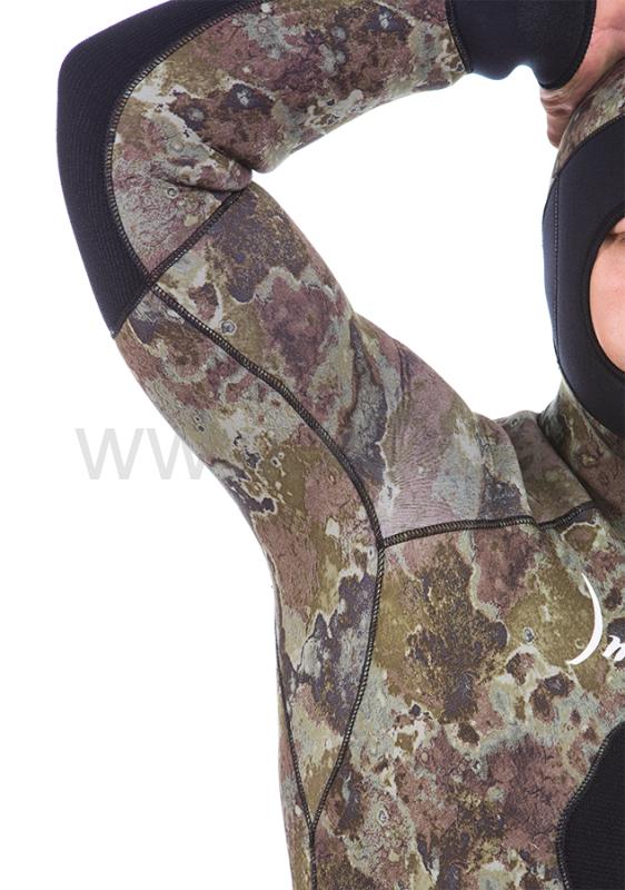 В изготовлении этого гидрокостюма применяется эластичный, мягкий неопрен премиум-класса фирмы Шейко. Снаружи неопрен покрыт сверхрастяжимой камуфлированной лайкрой, внутри – открытая пора. Гидрокостюм проклеен неопреновым клеем, рекомендованным специалистами корпорации Шейко. Швы костюма, выполненные на специализированном немецком оборудовании, имеют двухниточное плетение, что существенно увеличивает их долговечность и прочность.