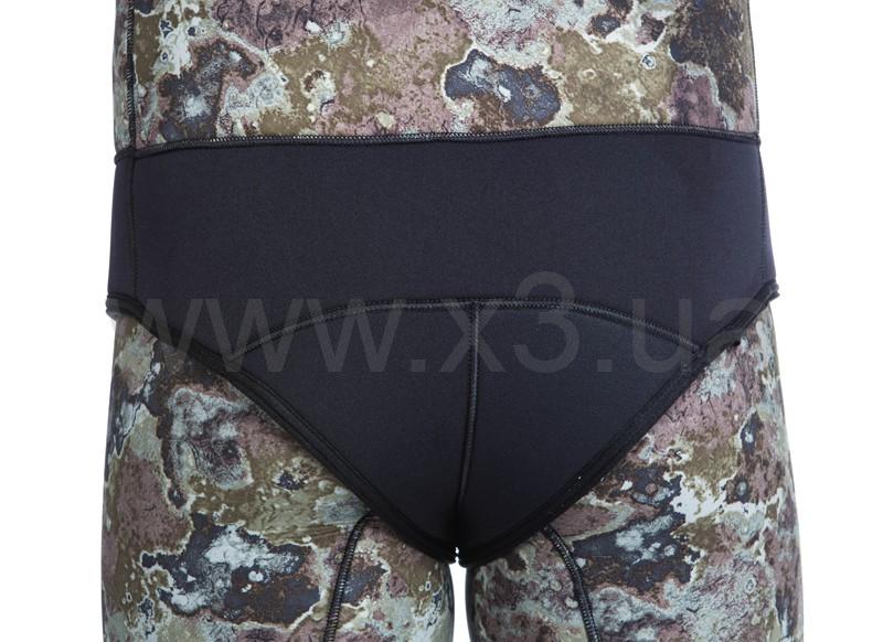 В изготовлении этого гидрокостюма применяется эластичный, мягкий, неопрен премиум класса фирмы Шейко. Снаружи неопрен покрыт сверхрастяжимой камуфлированной лайкрой, внутри – открытая пора.