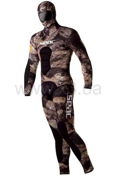 Гидрокостюм из двух частей, без молнии, специально для подводной охоты изготовлен из суперэластичного неопрена.