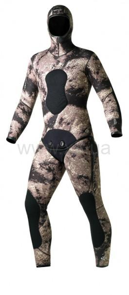Гидрокостюм из двух частей, без молнии, специально для подводной охоты изготовлен из суперэластичного неопрена.