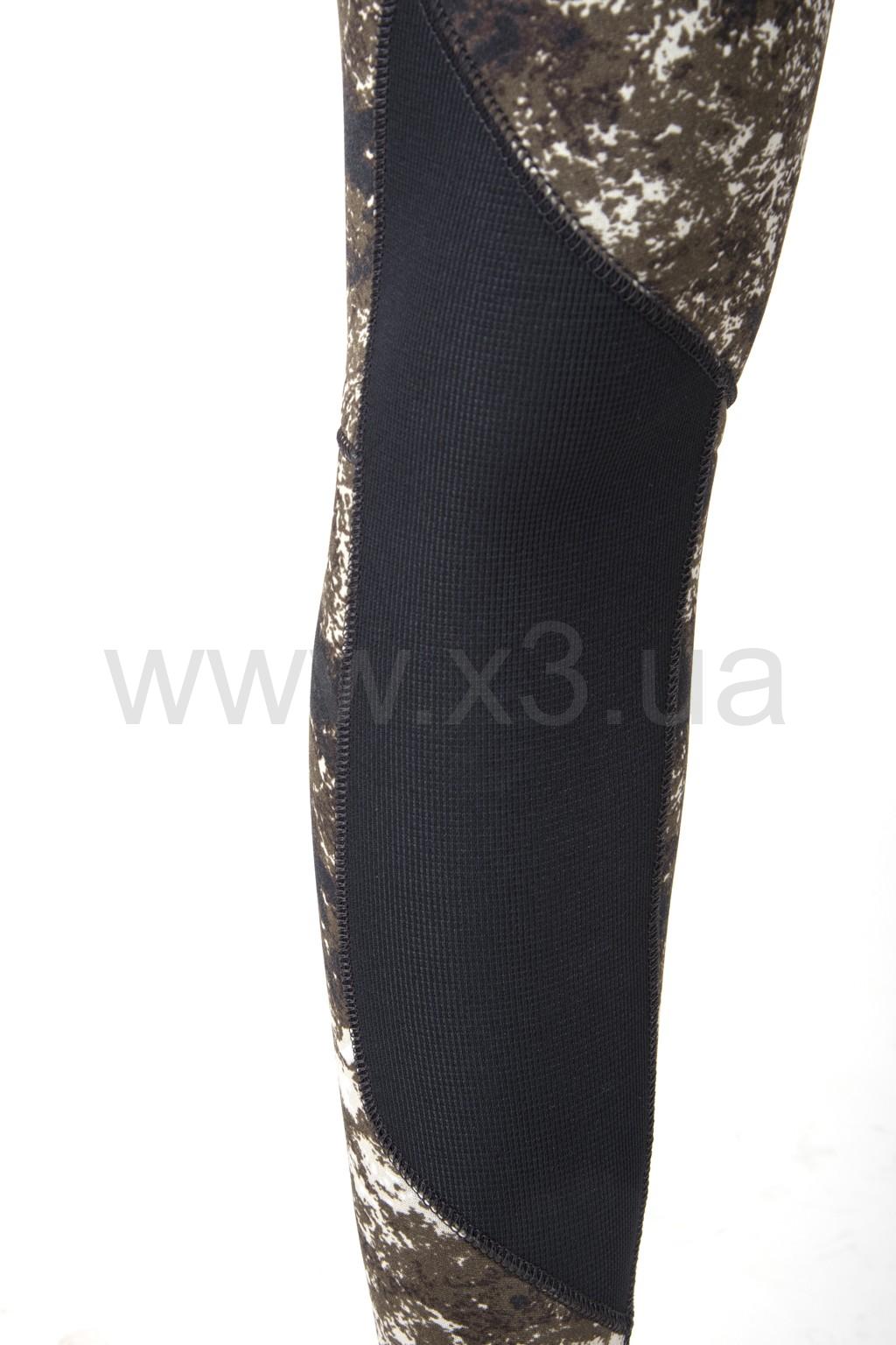 Неопрен Ямамото 38 приклеен и сшит с плоским оверлоком. Верхнее покрытие текстильное. Предварительно сформированный анатомический разрез на руках/коленях/спине и Aquastop закрываются вокруг лица, запястий и лодыжек, с системой SSRS (супер растягивающее уплотнение). 7-миллиметровая куртка с капюшоном с "бобровым" хвостовым. Брюки с высокой талией толщиной 5 мм с усилением Anti-abrasion от Powertex на коленях.